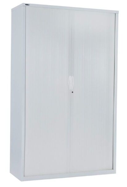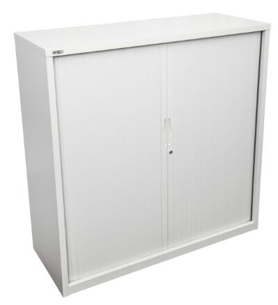 The 900mm Wide Go Tambour door cupboard needs no space to open doors, saving valuable floor space and can fit easily into a workstation layout with a range of heights.